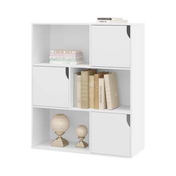 6 bölmeli kendinden ayakta ahşap kitaplık 3 raflar kapılar ofis çalışması için 80X30X96 cm beyaz oturma odası